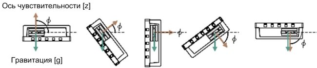 Техническая Реализация Угол φ рассчитывается по следующей формуле: Угол φ = arcsin ((Vout - Смещение) / (1g x Коэффициент масштабирования)) Здесь угол φ указывается в градусах. При вращении акселерометра вокруг горизонтальной оси он будет выдавать синусоидальный выходной сигнал под воздействием гравитационного поля Земли. На рисунке 2 показан пример акселерометра MS9002.D при различных углах наклона относительно направления ускорения гравитации.
