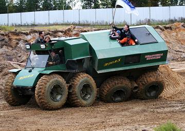 Вездеходы на шинах сверхнизкого давления (снегоболотоходы)Снижение в шинах давления способствует повышению проходимости транспорта. Именно по этой причине вездеходы на шинах сверхнизкого давления получили столь широкое распространение на отечественном рынке специализированной техники. Используют их для грузопассажирских перевозок в заболоченных и заснеженных областях. Также не страшны им и водные преграды, и песчаная местность. При случае малогабаритные вездеходы могут использоваться для передвижения и на асфальтированных трассах. Буровая установка или какое-либо другое технологичное оборудование может быть доставлено с помощью вездеходов на шинах сверхнизкого давления в любую местность. Однако, здесь нужно отметить, что погрузочная форма (если таковая имеется) также должна быть установлена на шины сверхнизкого давления. Довольно часто снегоболотоходы применяют и в сельскохозяйственной отрасли для ликвидации последствий стихийных бедствий. Разновидности вездеходов на шинах сверхнизкого давления. Комфортно передвигаться по заболоченной, заснеженной и пересеченной местности можно только на специализированных внедорожниках. Вопреки распространенному мнению, вездеходы на шинах сверхнизкого давления пользуются спросом не только у промышленных организаций, но и среди заядлых охотников и рыболовов, а также простых фермеров, которым весной и осенью бывает тяжело добраться до своих владений. Все вездеходы разделяют на три группы: