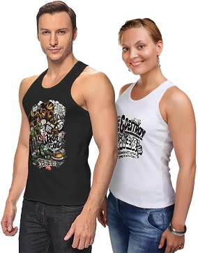 Выбор индивидуального принта. Еще одним веянием современной моды является стремление многих людей выделится на общем фоне яркими цветами и нестандартными рисунками на одежде. Эту задачу решает приобретение майки без рукавов с принтом. Например, на сайте PLAYPRINT.RU представлено более трехсот тысяч самых разнообразных вариантов цветовых решений, рисунков и надписей. Для удобства выбора коллекции принтов разделены на тематические группы, такие как: