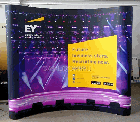 - Отсутствие ограничений по визуализации рекламы вашей продукции и формы выставочных стендов. При их изготовлении применяются легкие полимерные материалы и прочный алюминиевый композит. Современные технологии позволяют придавать этим материалам, а значит, и выставочному стенду сложные геометрические формы.