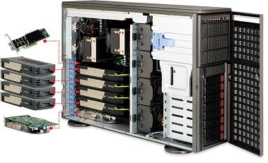 У серверов имеются и другие комплектующие: контроллеры, жёсткие диски, корпуса и стойки для них, сетевые карты и адаптеры, приводы CD, DVD и Floppy (последние устанавливаются по необходимости).