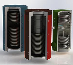 ТеплоаккумуляторыДействие теплоаккумуляторов очень схоже с действием традиционных электрических аккумуляторов (отсюда, кстати, и схожесть в их названиях). Только если традиционные аккумуляторы накапливают в себе электрический ток, то теплоаккумуляторы накапливают в себе избыточное тепло, генерируемое, прежде всего, твёрдотопливными котлами. Накопленное в себе тепло теплоаккумулятор затем отдает в систему отопления в периоды, когда твердотопливный котёл уже не способен нормально нагревать воду. Здесь следует отметить, что в отличие от жидкотопливных котлов, в которые топливо поступает непрерывно из достаточно вместительной ёмкости (цистерны), твёрдотопливные котлы работают от т.н. заправки. Это достаточно небольшой объем подготовленных дров, угля, торфа или топливных брикетов. За счёт высокого КПД (90-95%) твёрдотопливные котлы способны на одной топливной заправке отапливать дом в течение суток, а некоторые модели и в течение полутора суток. Но если вовремя не восполнить топливную заправку, то твёрдотопливный котел не сможет поддерживать тепло в доме, у него для этого просто не будет топлива. Вот тут-то и пригодится вам теплоаккумулятор. В периоды, когда выгорает топливная заправка, именно это устройство будет поддерживать в доме комфортную температуру, отдавая в систему отопления накопленное в себе тепло. Как работает теплоаккумулятор? Конструкция теплоаккумулятора проста, а потому надёжна и недорога. Фактически, это очень хорошо утеплённая буферная ёмкость, установленная рядом с котлом отопления, от которого теплонаситель (вода) поступает в неё с максимальной температурой. Благодаря эффективной термоизоляции потери тепла у данной буферной ёмкости равны практическому нулю.