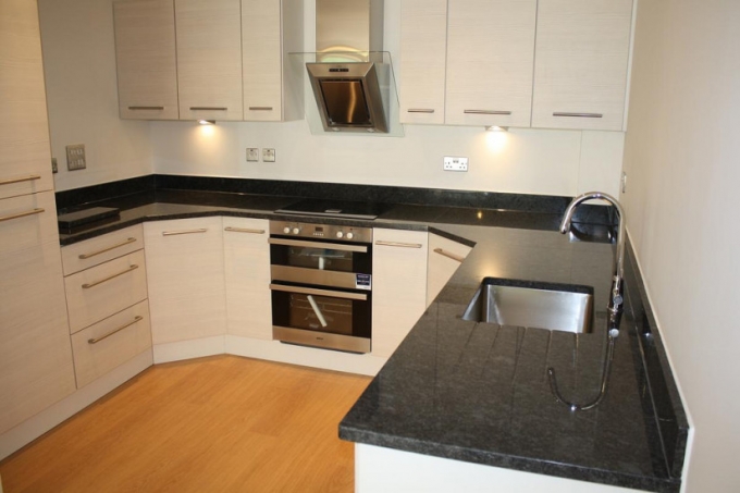 - Столешница. Для маленькой кухни оптимальным решением станет г-образной вариант из искусственного камня, который продается тут. Столешница поможет правильно разделить комнату на зону для приема пищи и рабочую. Помимо этого она характеризуется эргономичностью.