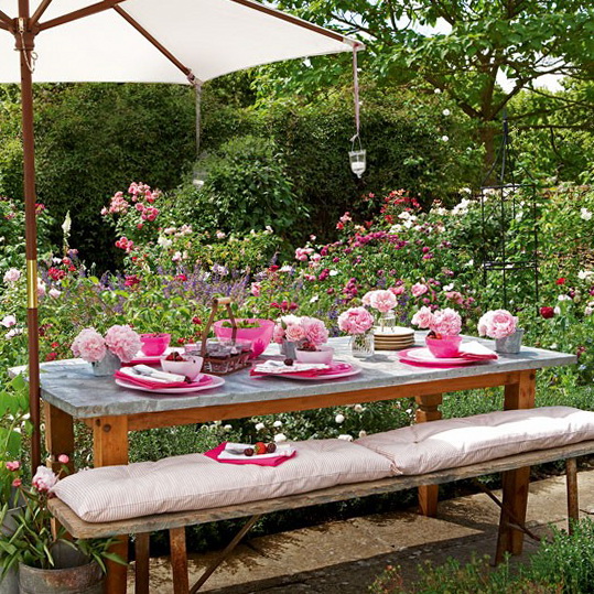 Площадка для отдыха. Она должна быть достаточно большой и защищенной от солнца и ветра. Поделите ее на две зоны – одна для стола, другая для игр, костра или барбеккю. Уделите внимание проходу до дома, вы не должны спотыкаться всякий раз о гостей, когда нужно забежать в помещение. Уличная дизайнерская мебель будет весьма к месту. Солнце. Как бы ни было приятным погреться на солнышке, перебор нам не к чему. Запаситесь тентами, зонтиками или выгодно используйте тень от дома и деревьев. Кстати, соломенный шляпы для гостей – тоже удачная находка. Вода. Небо может быть безоблачным и ясным, но капризов природы никто не отменял. Внезапно нагрянувший дождь не должен испортить ваших планов. Те же зонтики могут пригодится и в этом случае, только проверьте материал, из которых они сделаны. Примеры фото интерьеров террас тут. Сейчас много водоотпорных вариантов. И, если уж дождь не прекращается, заранее приготовьте место в доме, которое примет гостей вместе со столами. Еда. Ах, как приятно наслаждаться явствами гостеприимного хозяина! А он только и бегает туда-сюда, принося кушанья. А где же отдых для самого героя? Пусть ваши салаты и закуски будут приготовлены и распределены по небольшим контейнерам, их очень удобно принести и заново накрыть стол.
