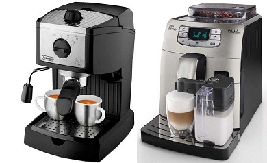 Кофемашины для домашнего использованияВ 1843 году в Париже Эдвардом Лойзелем была изобретена кофемашина. Первая модель отличалась большими габаритами и работала на угле. Только в 1901 году был создан прототип современных агрегатов. Выпускаемые в настоящее время кофемашины компактны, работают от электрической сети с напряжением 220 Вт и имеют высокую производительность. Какими бывают бытовые приборыКофемашиной называют аппарат, предназначенный для варки кофе в автоматическом, полуавтоматическом или ручном режиме. Современные производители выпускают приборы, отличающиеся многофункциональностью. От кофеварок они отличаются наличием в конструкции микромельницы. Самым удобным прибором считается кофемашина автомат. Для приготовления в ней напитка достаточно нажать всего одну кнопку. Кофемашины капсульного типа Для варки напитка в нём используются специальные капсулы молотого кофе. Они выпускаются в пластиковой или фольгированной упаковке. Перед приготовлением напитка капсулы освобождаются от упаковки и прокалываются. Суть процесса приготовления состоит в пропускании через них горячей воды. Она подаётся к отсеку с сырьём небольшими порциями. Медленная скорость прохождения воды через капсулу позволяет получать на выходе крепкий напиток с насыщенным ароматом. Достоинства: