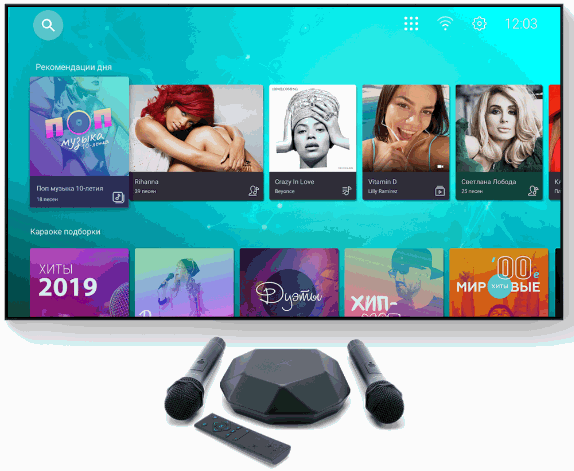Для минимизации количества проводов дома подключить X-STAR к интернету можно и через Wi-Fi. В приставку встроен адаптер стандарта 802.11a/b/g/n. Кроме того, система оснащена Bluetooth-адаптером. Инновационная система оценкиВ X-STAR полностью переработана система оценок. Во время исполнения композиции вокалист набирает баллы за попадание не только в слова, но и в ноты. При этом она учитывает еще и сложность конкретной песни. Для каждой из них прописано максимальное количество баллов, которые можно набрать за ее исполнение. После завершения выступления караоке онлайн выставляет итоговую оценку. По ней легко понять, получилось исполнить композицию идеально или еще нужно потренироваться. Возможность петь соло, дуэтом или устраивать соревнования с друзьямиВ караоке-системе X-STAR доступны различные варианты исполнения песен. Стандартный режим предусматривает возможность спеть соло или дуэтом. А при использовании функции караоке-баттл можно устраивать соревнования с друзьями, чтобы узнать, кто лучше исполнит очередной хит. В режиме состязания вокалистам показываются 2 раздельные строки с нотными подсказками. Караоке онлайн подсчитывает отдельно для каждого участника количество набранных баллов. После завершения исполнения песни на экран выводится итоговая оценка, по которой легко понять, кто стал лучшим. Коллекция караоке-эффектовКараоке-эффекты позволяют придать выступлению новый оттенок. В X-STAR их встроено 15 вариантов: