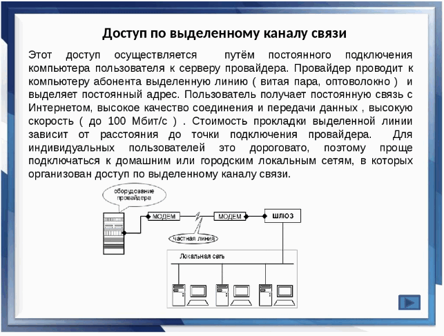 Пропускная способность общих линий предусматривает многочисленные ограничения, мешающие передавать большие объемы информации. Выделенный сетевой канал позволяет руководствоваться исключительно потребностями бизнеса, снять любые запреты относительно масштабов передачи данных. Также сигнал не будет зависеть от конкретной точки доступа, на всех локациях созданной сети арендодателем гарантируется стабильная связь, легкость и удобство коммуникации.