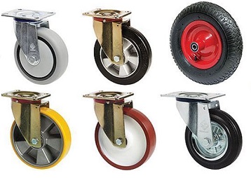 На поворотных колёсах и роликах устанавливаются подшипники, которые крепятся к кронштейну. Оснащённое ими оборудование используется для работы в тесных условиях. Поворотных колёс и роликов на оборудовании устанавливается не менее 2-х.