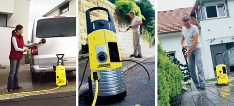 - Бытовые – пластиковая помпа выдает до 360 л/час при давлении до 110 бар. Ресурс от 30 до 100 часов позволяет мыть транспорт, садовый инвентарь и дорожки не чаще 1 раза в неделю. Легки, недороги, но почти неремонтопригодны.