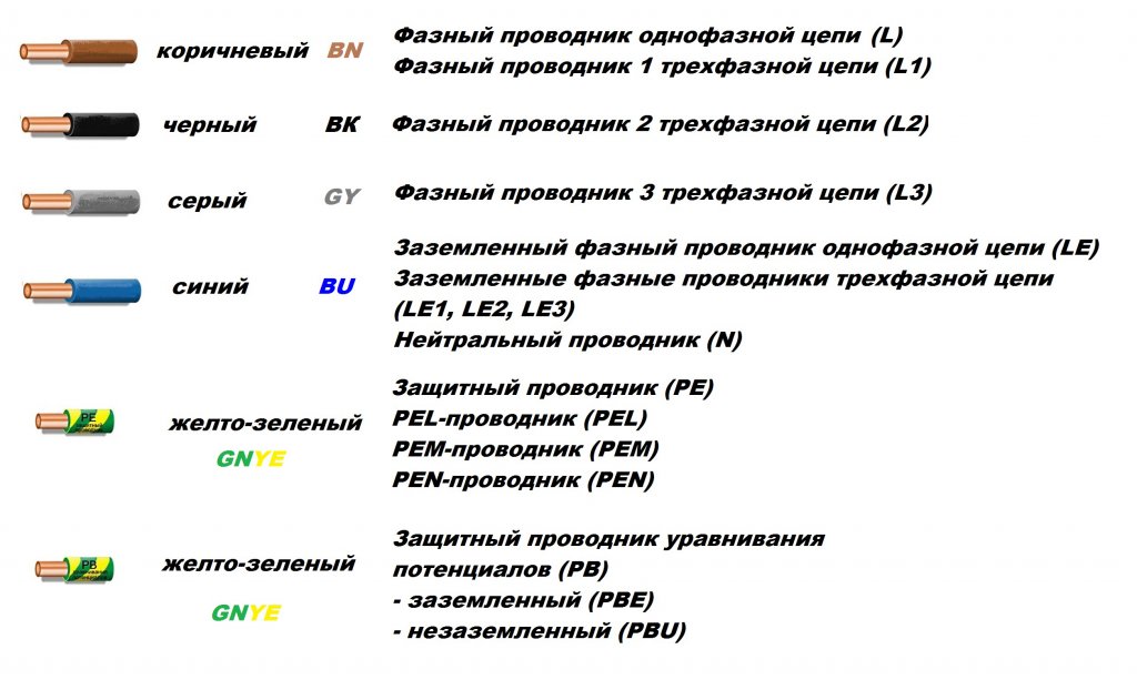 Провод марки АППВ в климатическом исполнении ХЛ, с двумя алюминиевыми жилами сечением 2,5 мм с желтым цветом изоляции (Ж). Расшифровку буквенных обозначений можно найти в вышеупомянутом ГОСТе (тут ссылка) Цветная маркировкаИдентификация проводников цветовым кодом и буквенно-цифровым обозначением осуществляется согласно ГОСТ Р 50462-2009 (МЭК 60446:2007) на рисунке ниже.