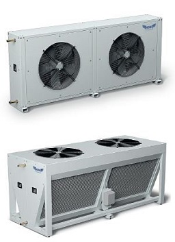 Выносные воздушные конденсаторыВоздушный конденсатор выносного типа является функциональной частью системы кондиционирования. Его предназначение - отвод тёплых воздушных масс, производящихся в процессе работы кондиционера, и обеспечение подачи прохладного воздуха. Устройство это не является автономным, оно эксплуатируется совместно с водоохладительными элементами (чиллерами) или с иными видами вентиляционного оборудования. Конденсатор называют выносным из-за места его размещения - снаружи здания, в то время, как основная охладительная установка находится внутри помещения. Соединяются эти два агрегата между собой посредством междублочной фреоновой коммуникации. По ссылке можно ознакомиться с практическими примерами таких устройств. Принцип устройства выносного (воздушного) конденсатора Базовая комплектация устройства выносного конденсатора включает в себя: