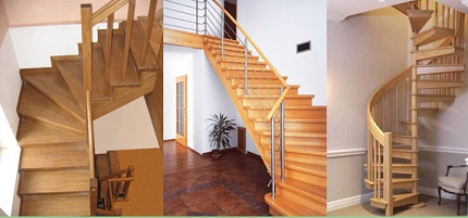 Главная проблема дерева в том, что оно подвержено внешним воздействиям. Соответственно, следует позаботиться о защите от влаги, насекомых-вредителей и грибка. Помните, что влажность и прямые солнечные лучи отрицательно влияют на характеристики материала — это стоит учитывать ещё на этапе создания плана дома. Виды конструкций Владелец дома может не ограничивать себя в плане проектирования и дизайна деревянных лестниц. Однако, нужно соблюдать СНиП и ГОСТ, в первую очередь потому, что от этого зависит безопасность. По конструкции выделяют маршевые и винтовые лестницы. Маршевые - классический вариант, как в подъезде жилого городского дома. Несколько прямых маршей с небольшой площадкой-перемычкой между ними. По форме бывают Г-образными (двухмаршевые) и П-образные (трёхмаршевые). Лучше всего их устанавливать у стены. Винтовые лестницы обеспечивают экономию места и привлекательный внешний вид. В данном случае нужно особенно тщательно подойти к соблюдению безопасности строительства. Также существует классификация по форме ступенек: