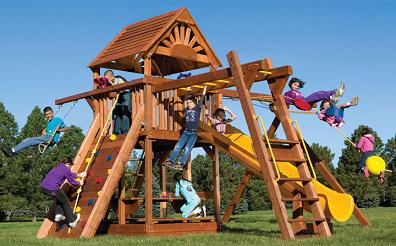 Детские игровые площадкиИгровая площадка для детей представляет собой территорию, на которой располагаются развлекательные конструкции, например, качели, горка, карусели. Здесь дети учатся контактировать друг с другом – общаться и играть. Несмотря на широкое распространение самых передовых современных материалов, дерево остается по прежнему востребованным при возведении игровых конструкций. Детские деревянные площадки в самых различных исполнениях можно встретить во дворах жилых домов, в парках и зонах отдыха. Разновидности. Детские площадки разделяют на несколько видов: