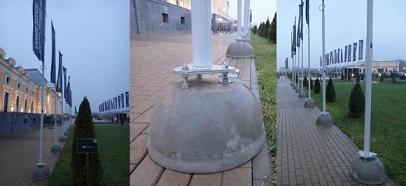 Уличные флагштокиВ местах проведения представительских и рекламных мероприятий используются флаги, цветные вымпелы или баннеры Все они закрепляются на специальных мачтах — флагштоках. Конструкция такого флагштока делает его использование целесообразным на любом мероприятии. Флаг или баннер на удобном современном флагштоке - это быстрое донесение информации до потенциального клиента, создание торжественной или праздничной обстановки. К таким конструкциям можно крепить как прямоугольные полотна, так и нестандартные формы, например, в виде паруса или капли. Конструкция флагштока. Конструктивно уличные флагштоки представляют собой вертикальную стойку, устанавливаемую на земле или фасаде здания. Стойка дополнительно комплектуется устройством для поднятия флага. Секционные флагштоки состоят из двух - трёх колен, соединяющихся втулками. Сечение мачты зависит от ветровой нагрузки и размеров флага. Выбор высоты делается с учётом ландшафта, окружающей обстановки и высоты расположенных рядом зданий. Флаги на стойках крепятся с помощью карабинов. Чтобы поднять или опустить полотно флага, используется прикрепленный к нему шнур или трос. Верх стойки оформляется декоративным навершием. Так как флагштоки используются на открытой местности и при любых погодных условиях, они должны соответствовать особым требованиям: устойчивостью к действию влаги; высокими прочностными характеристиками, эстетической привлекательностью. Высота стандартной конструкции обычно составляет 6 - 18 метров, на заказ изготавливаются флагштоки и большей высоты.