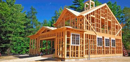 Отделочные материалы, которыми обшивается канадский дом, например, плиты ОСБ, при их качественном изготовлении не уступают в прочности и долговечности кирпичу или брёвнам. Каркасные дома хорошо держат тепло и поэтому делают возможные как летнее, так и круглогодичное проживание. Сборка и монтаж дома по каркасной технологии. Из существующих методов сборки каркаса наиболее экономичным и простым в исполнении, и, соответственно, наиболее популярным, является каркасно-рамочный способ. Каркас монтируется непосредственно на рабочей площадке из выбранного для строительства материала. Чаще всего применяется деревянный брус различных размеров, в зависимости от назначения элементов. После устройства фундамента и монтирования по его периметру доски 150x50 мм, обработанных водоотталкивающей пропиткой и уложенных на слой рубероида, приступают к укладке чернового пола. Фундамент перекрывается лагами, брусьями из недорогой древесины. Между ними укладывается утеплитель и настилаются доски пола; таким образом, обеспечивается тепловая изоляция от земли и создаётся основа для возведения вертикальных несущих конструкций. Брусья для основных стоек каркаса, по фасадам и внутренним перегородкам, должны быть не менее 150x150 мм. Кроме вертикальных стоек для придания конструкции жёсткости устанавливаются наклонные раскосы. Таким образом, будущие стены оказываются состоящими из треугольных ячеек. Раскосы монтируются так, чтобы не помешать устройству планируемых дверных и оконных проёмов. Затем монтируются балки перекрытия; брус для них берут толщиной от 50 мм. Для устройства стропил кровли берут брус 150x50 мм. Наклон ската кровли, материал и её конфигурация определяются пожеланиями владельца. На следующей стадии строительства готовый каркас заполняется утеплителем. Для этого применяются, в основном, пенополистирол или плиты из минеральной ваты. При правильном выборе утеплителя и обшивки стены дома дышат: через них из помещения удаляется избыточная влажность, в некоторых случаях создающая неудобства для обитания в нем.