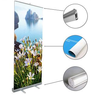Информационность и качество рекламы повышается благодаря возможности отпечатывать сведения на обеих сторонах полотна стенда. Также среди Ролл Ап стендов сравнительно недавно появился новый вид - Scrolling roll-up, изображения на котором движутся благодаря механическому перемещению плаката. Такая динамика движения раньше других привлечет внимание зрителей. Конструкция. Принцип устройства Ролл Ап стендов представлен вставляемым в основную конструкцию пружинным механизмом. С его помощью полотно можно собрать в рулон или развернуть в полный рост. Вертикальные стойки чаще всего бывают складными, состоят из двух или более металлических трубок иногда разного диаметра. По большей части у большинства Ролл Ап стендов они полностью полые внутри, а на концах имеют сужение или заточенную резьбу для качественного соединения друг с другом. Высота развернутого стенда в среднем составляет от 0,8 до 2 метров. Это самые распространенные параметры данных изделий. Стенды упаковываются в чехлы-тубусы (пластиковые или матерчатые), оснащенные ручками для удобства переноса. Компактная сборка дает возможность легко транспортировать Roll-up стенды вручную или в автомобиле. Если появилась необходимость привлечь большое количество зрителей к определенной информации, эффективным процесс можно сделать при помощи Rull-up.