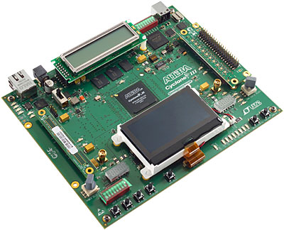Отладочный комплект DSP Development Kit, Cyclone III Edition, представляет собой завершенную отладочную платформу, включающую все необходимое программное и аппаратное обеспечение для немедленного начала разработки DSP приложений на базе ПЛИС FPGA компании Altera. Комплект включает отладочную плату Cyclone III, высокоскоростную плату расширения (HSMC) преобразования данных, программный инструмент проектирования DSP Builder, среду разработки Quartus II, пробная версия ПО MATLAB/Simulink, набор оценочных IP-блоков функций, примеры проектов, источник питания, кабели и документацию.
