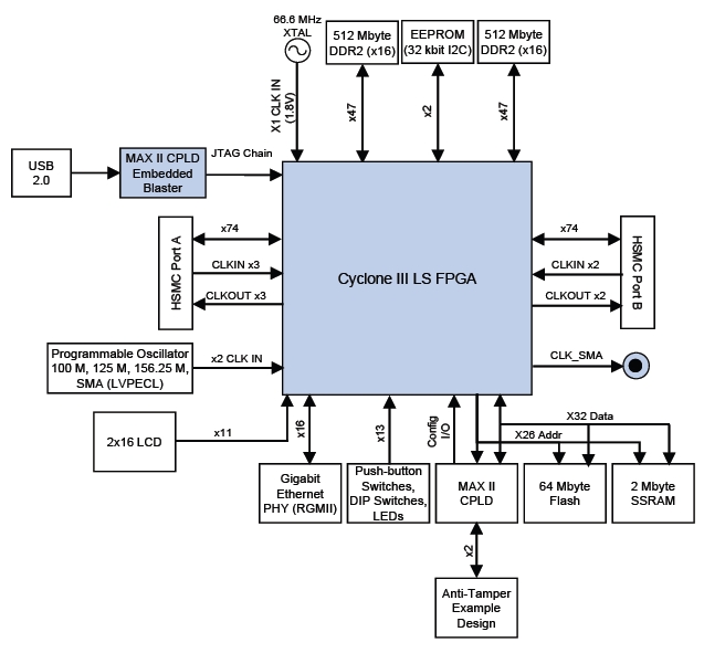 Внутренняя архитектура отладочного комплекта Altera Cyclone III LS |
