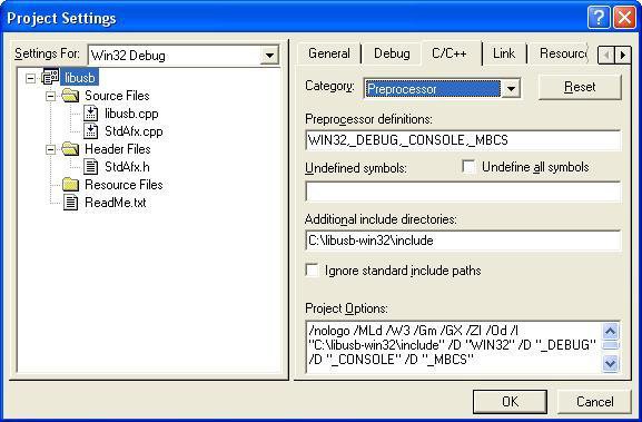 Создайте шаблонный, консольный проект «Hello, world!» в MSVC. Затем нужно настроить этот проект, подключить заголовочный файл и статическую библиотеку среды libusb-win32. В мо.м случае, архив распакован в C:\libusb-win32 , в подкаталоге include находится заголовочный файл lusb0_usb.h , а в подкаталоге C:\libusb-win32\lib\msvc находится файл библиотеки libusb.lib. Там же можно обнаружить каталоги с библиотеками для 64-разрядных платформ. В главном меню выбирается, «Project -> Settings…» , вкладка C/C++ , в поле ввода «Additional include directories» , ввести путь к каталогу, где лежит заголовочный файл lusb0_usb.h . На вкладке «Link» , в поле «Object/library modules» , через пробел добавить библиотеку libusb.lib , а в поле ввода «Additional library path», добавить путь к этой библиотеке. Посмотрите коды производителя мыши USB и подставьте в текст программы, затем откомпилируйте. Программа открывает USB устройство по кодам производителя и продукта, считывает некоторые строковые дескрипторы и выводит на экран. Запускать из командной строки. Имея работающий шаблон легко создать программу с графическим интерфейсом.Функции usb_find_busses и usb_find_devices находят все шины хоста и все устройства на шинах и сохраняют эти сведения во внутренних структурах данных. Функция usb_get_busses возвращает ссылку на глобальную структуру, где хранятся сведения о шинах, устройствах на шинах и дескрипторах этих устройств. Описание функций библиотеки libusb дано в приложении. На момент написания материала, существовали 2 версии библиотеки, версия 0.1 и версия 1.0 . Они достаточно сильно различаются, libusb-win32 перенесена из версии 0.1 для Linux. На рисунке 4 приведены формы проекта MSVC, для настройки среды разработки с библиотекой libusb. С сайта vk.com/protocols можно скачать готовый проект для Visual C 6.0. для Windows. В Ubuntu для программирования требуется установить пакет libusb-dev, или установить библиотеку из исходных кодов. Для понимания работы с библиотекой необходимо знание работы со структурами и со списками структур на языке C. Для компилирования необходимо иметь на машине компилятор GCC. На мо.м компьютере была установлена версия библиотеки libusb - 0.1.12. Утилитой lsusb, посмотрите коды производителя и продукта своей мыши или иного устройства, к которому нужно подключиться. Распакуйте архив с программой для Linux в любой доступный каталог. Откройте файл c.c любым редактором, измените эти коды на коды своего USB устройства в тексте программы. Из командной строки зайдите в каталог с makefile и выполните команду make all. Запуск компилированной программы осуществлять с правами суперпользователя.