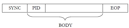 Пакет – базовое понятие USBКоммуникационный стек USB, в отличие от TCP/IP «несимметричный». Поэтому попытки проводить прямую аналогию со стеком TCP/IP и подобными стеками, нужно сразу отбросить. Уровни есть, но уровни разные на стороне хоста и USB устройства. Хотя без некоторой аналогии с сетями не обойтись. Для передачи данных в обоих направлениях и разного рода служебной информации используется только 2 проводника, не считая нулевого и питания. Соответственно и сложная система сигнализации на шине. Классический подход к изучению USB, сверху вниз или снизу вверх, мало подходит. Точнее будет трудно понять существо дела. Хотя формально все будет верно, но для новичка в USB непонятно. Поэтому лучше начать с середины. Предположим, что по этим проводникам как-то передаются биты информации. Первоначально не будем заострять внимание на механизмах реализации передачи сигналов по проводникам. Отдельно нужно заметить, что в работе любого USB устройства, есть две различные стадии, стадия конфигурирования и рабочий режим обмена. Здесь не будем рассматривать процесс энумерации, а только рабочий режим обмена данными. Основной элемент протокола USB - это пакет. Пакет, в свою очередь состоит из 3-х частей: преамбула, тело и концевик. Преамбула служит для подстройки частоты генератора при.мника, в английской транскрипции SYNC. Тело пакета - последовательность байт, от одного до 1025. Первый байт тела пакета - это идентификатор пакета, в английской транскрипции PID. Идентификатор пакет задает тип пакета, его функциональное назначение. Только первые 4 бита PID, кодируют тип пакета, а остальные служат для защиты от ошибок и дублируют первые 4 бита, в виде инверсной копии. Четырьмя битами, кодируется 10 типов пакетов, остальные 6 зарезервированы. Эти десять типов пакетов делятся на четыре категории: пакеты маркеры, данных, квитирования и специальные. Тело пакета содержит полезную информацию. Концевик - должен сигнализировать о завершении пакета. В английской транскрипции End-Of-Packet или EOP. Из этих тр.х частей состоят все пакеты, которые снуют туда-сюда по шине.