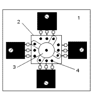 Рис. 7. Симметричная разводка электрических цепей в параллельно соединяемых приборах (кольцевое соединение): 1 - охладитель; 2 - печатная плата; 3 - соединение эмиттеров; 4 - соединение входов низкой стороны
