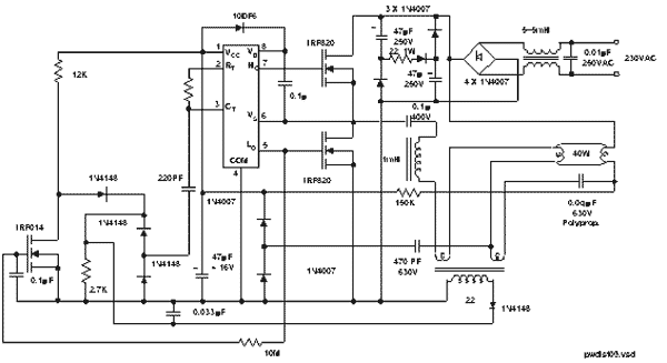 Рис. 1. Схема активной коррекции коэффициента мощностиС другой стороны, схемы пассивной коррекции коэффициента мощности рабо-тают на промышленных частотах (50 или 60 Гц) , используя конденсаторы и катушки индуктивности с сердечником из электротехнической стали, настроены на частоту напряжения сети питания в схемах фильтра нижних частот или полосового фильтра. К сожалению, физический размер и вес этих фильтров на промышленных частотах дела-ет их непривлекательными, особенно, если учесть, что остальная часть балластных схем может быть меньше компонентов, чем в корректоре коэффициента мощности!