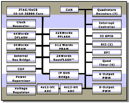 Микросхема DSP56F805 содержит следующие периферийные блоки: