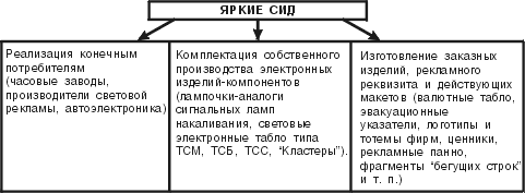 - заводам, специализирующимся на производстве серийной продукции на лампах накаливания показана возможность внедрения в нее ярких СИД (например, производителям крупногабаритных электронных часов) путем изготовления опытных и заказных образцов новых изделий.