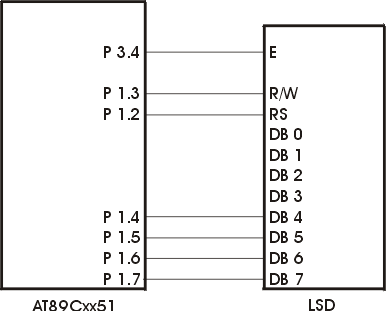 Типовая схема подключения LCD-модуля к микроконтроллерам MCS-51
