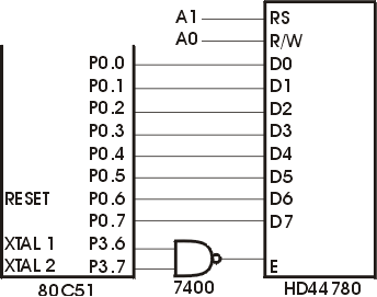 Типовая схема подключения LCD-модуля к микроконтроллерам MCS-51